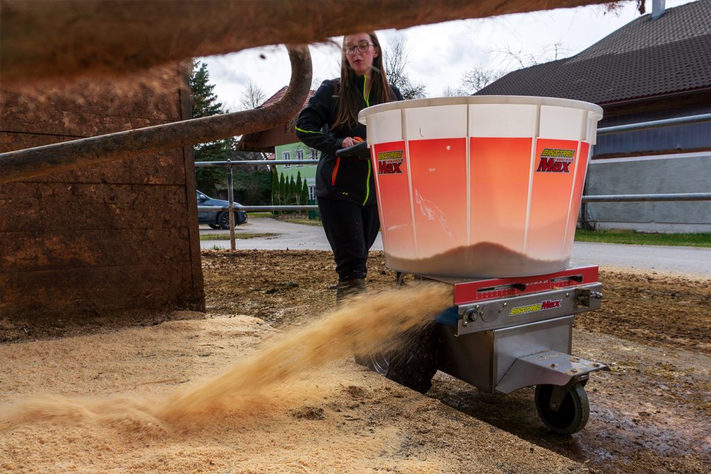 Mit unserem Einstreumax wird die Arbeit im Stall enorm erleichtert.